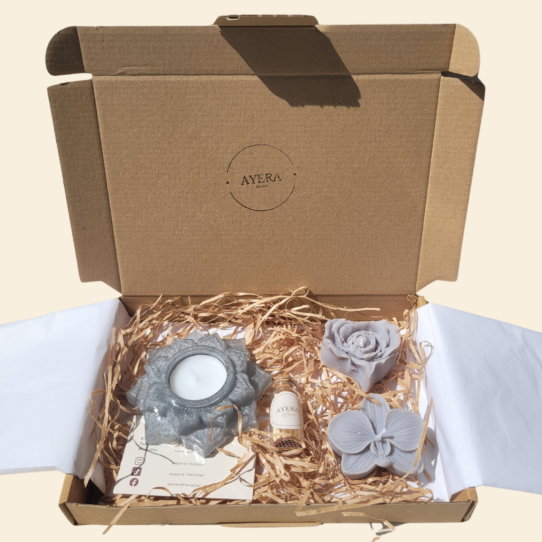 - Inhoud: Lotus waxinelichthouder incl. waxinelichtje, rozen- en een bloemen kaarsje, buisje met lucifers en een kaartje om een boodschap op te schrijven.