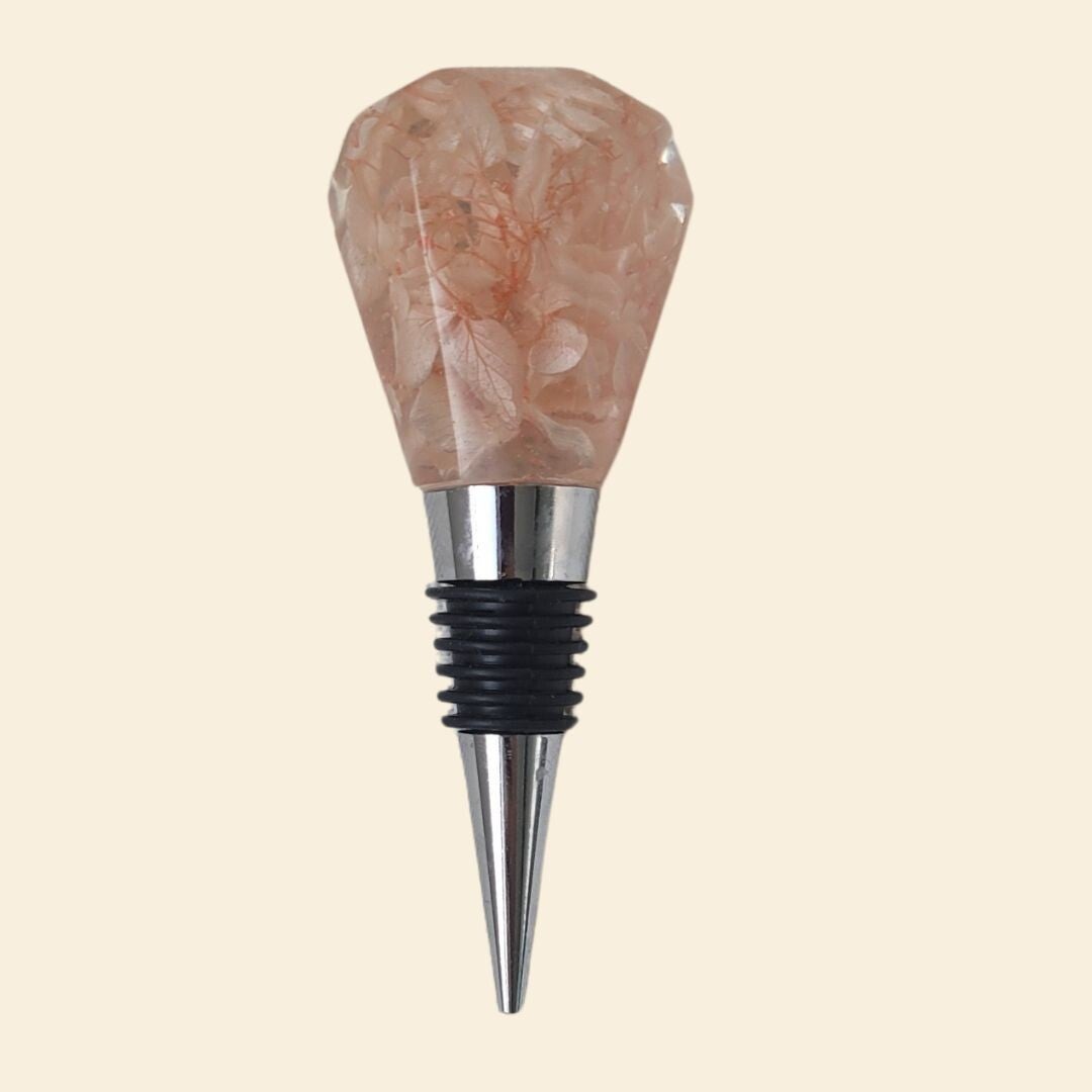 Wijnstopper roze kleurige droogbloemen/ zilverkleurig
