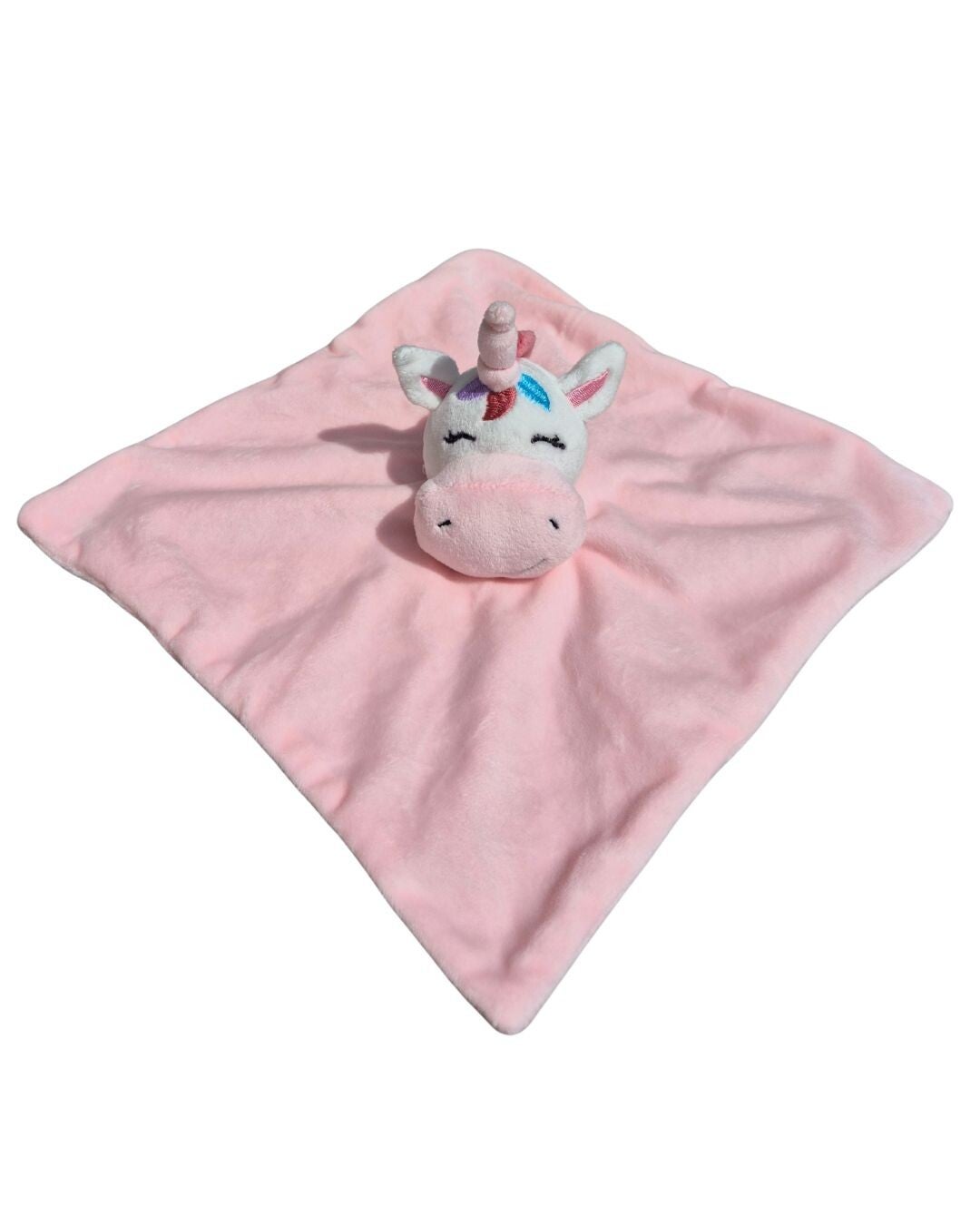 Lief knuffeldoek unicorn met een geborduurde naam. Keuze uit kleuren borduurgaren en verschillende lettertypes, perfect als kraamcadeau!