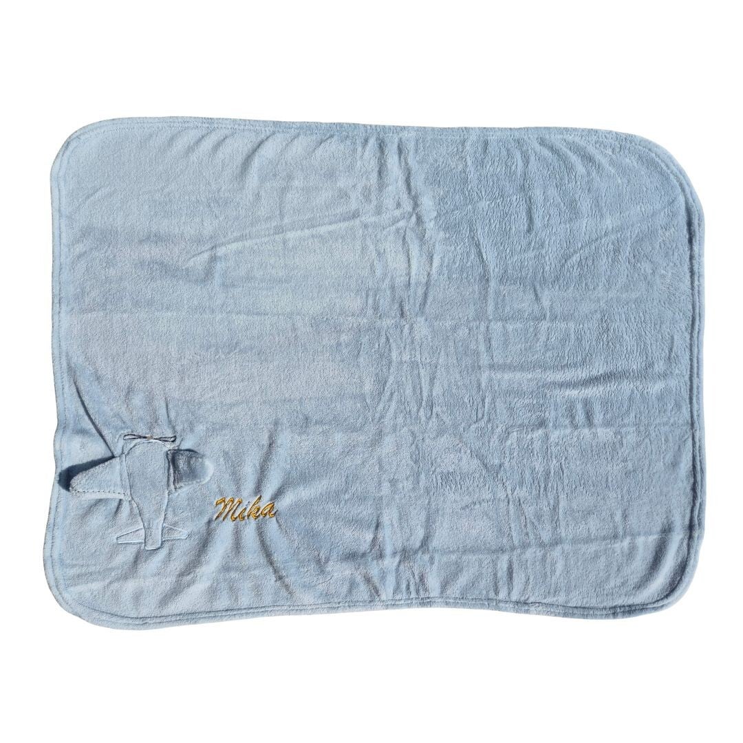 Omslagdeken vliegtuig met geborduurde naam