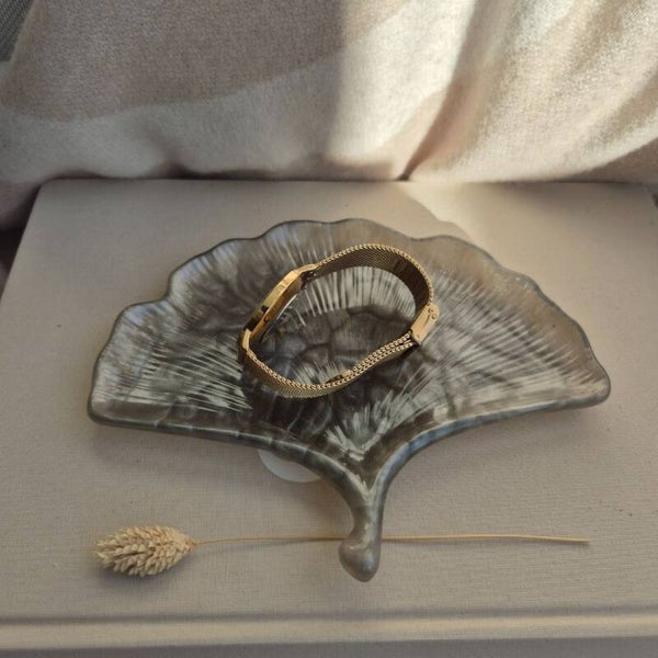 Handgemaakt grijs ginkgo blad van epoxy met een mooie glanzende afwerking en een kaart naar keuze. Waterbestendig en daardoor praktisch én decoratief in gebruik. Perfect als sieradenschaaltje of stijlvolle woondecoratie. Dit exemplaar is uniek en met zorg gemaakt.